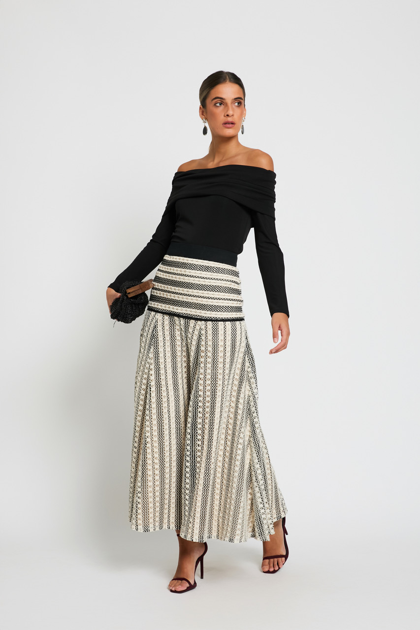 Falda confeccionada en guipur de maya trenzada