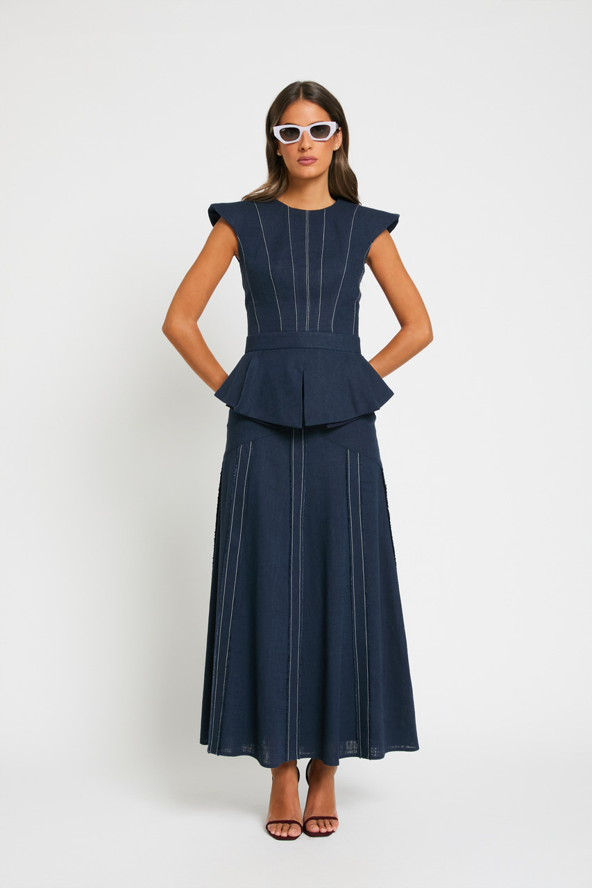 Falda confeccionada en lino con bieses desflecados